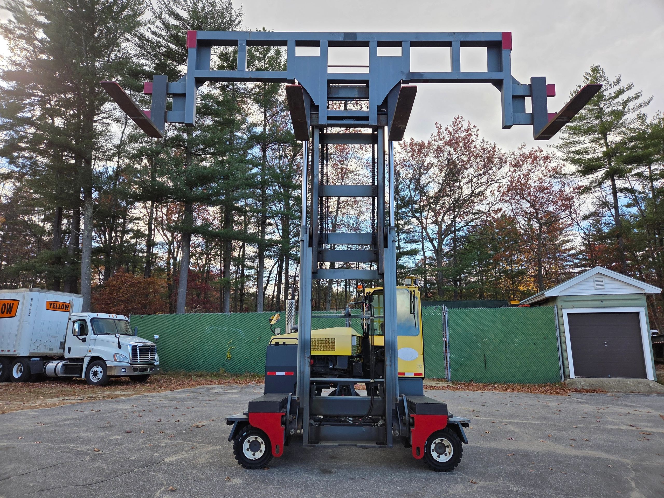 3 stage mast with side shift, 189" max lift height, 81" lowered mast, 46" forks, 18k hours, runs on propane (tank not included)