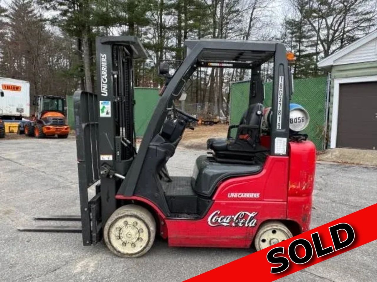 Enclosed cab, 3 Stage Mast with 181" Max Lift Capacity and Hydraulic Fork Positioner, 5050 lbs Lift Capacity, 5' Forks, Shuttle Shift, just 2400 hours, Runs on Propane (tank not included)